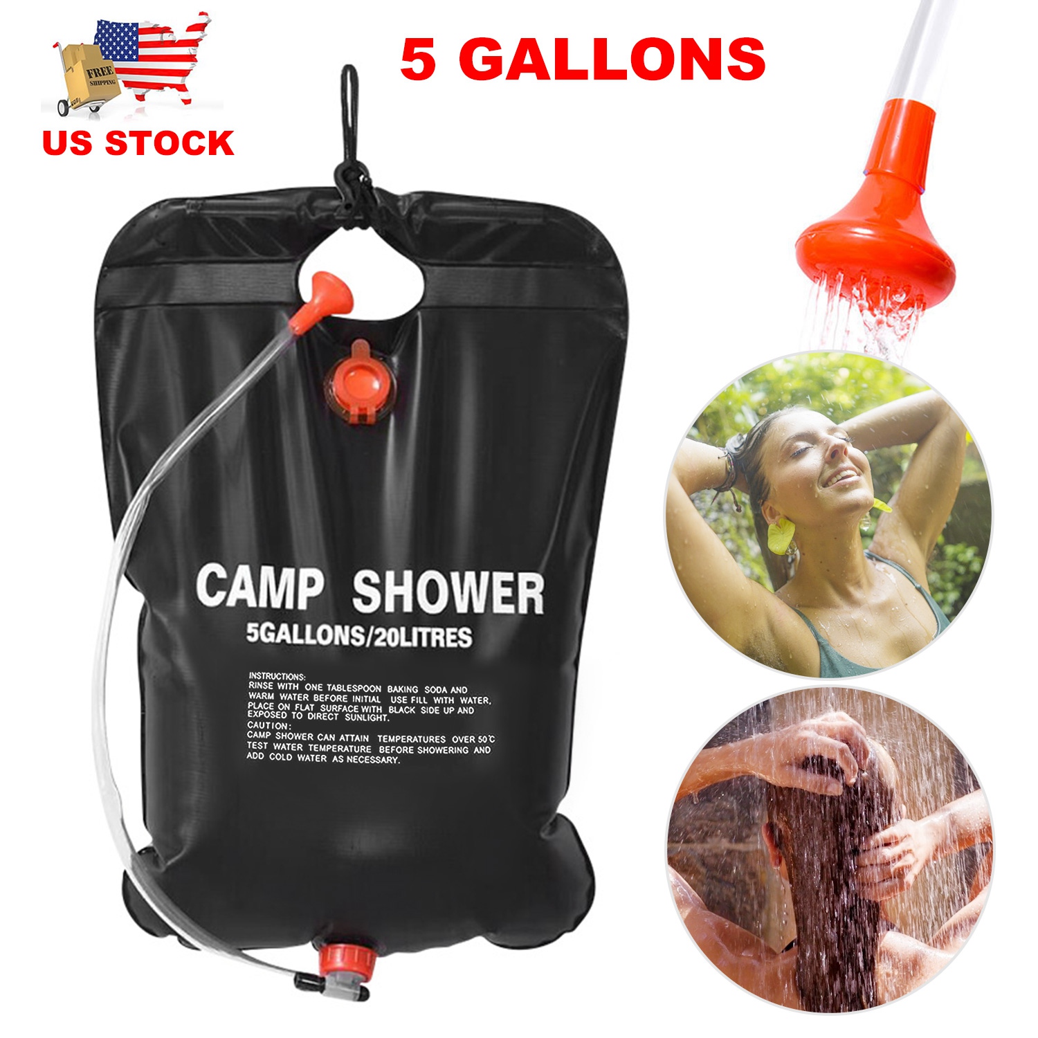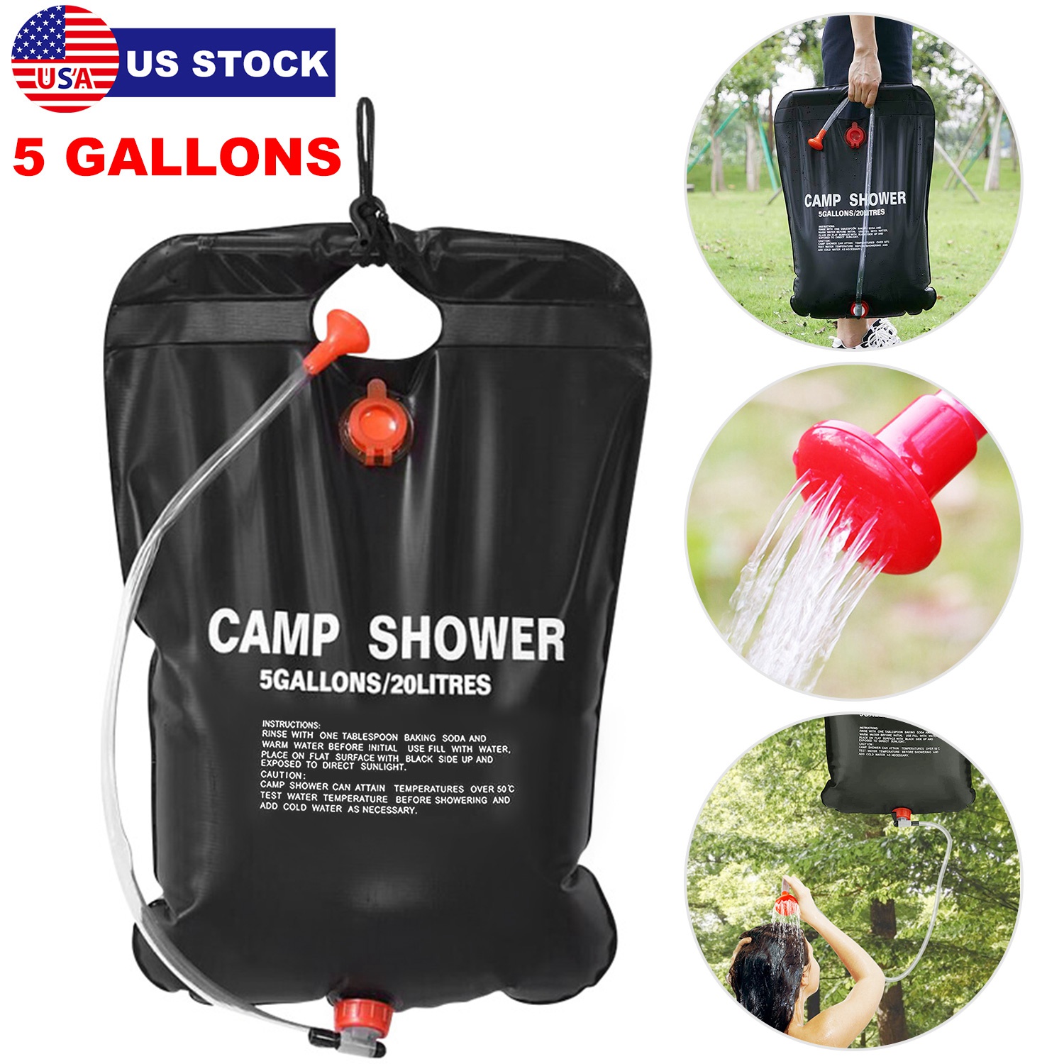 Portable Solar Heated Shower Bag Camping Shower Bath Water Bag 5 Gallons w/ On-Off Switchable Shower Head
